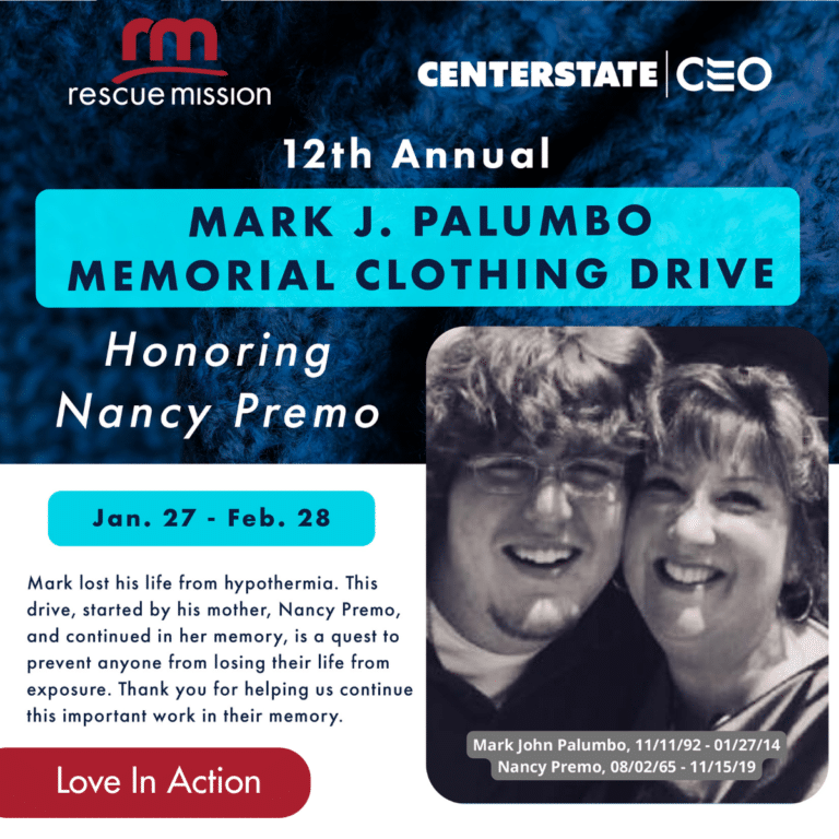 • Bring gently used winter coats, hats, sweatshirts, gloves, scarves, sweaters and warm clothing to CenterState CEO offices, any of this year’s participating drop off locations, or the Rescue Mission Administrative Building (155 Gifford Street, Syracuse, NY 13202)